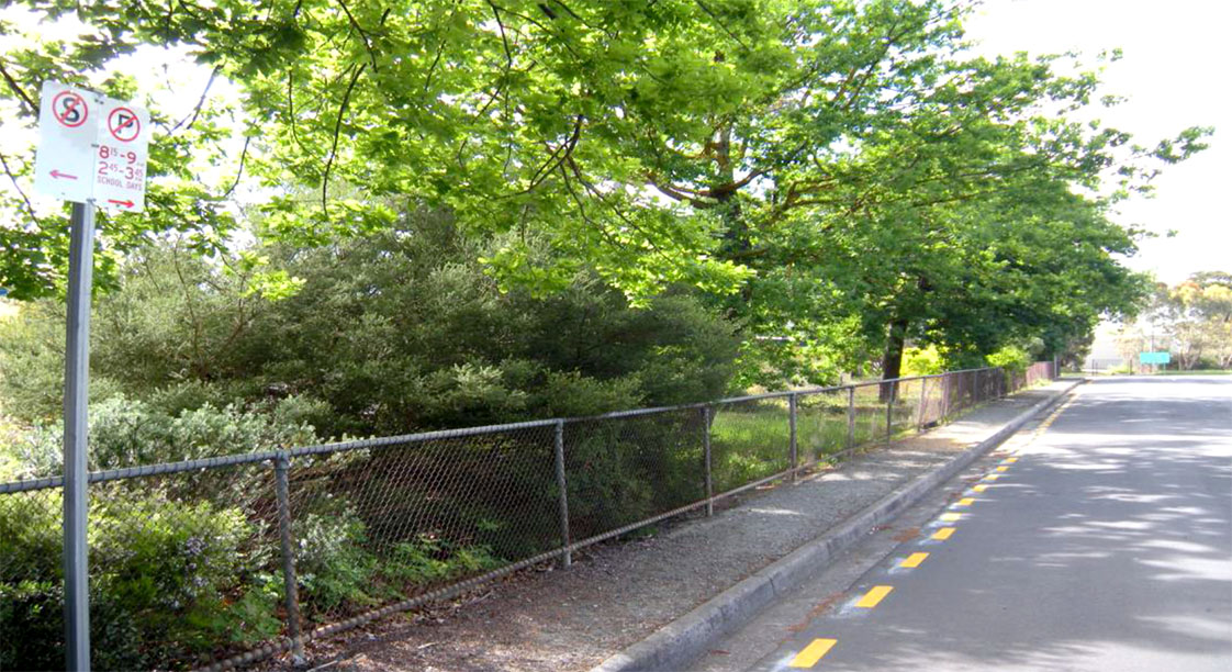 A shelter is offered for waiting students, connected to Apollo Street by a short path.